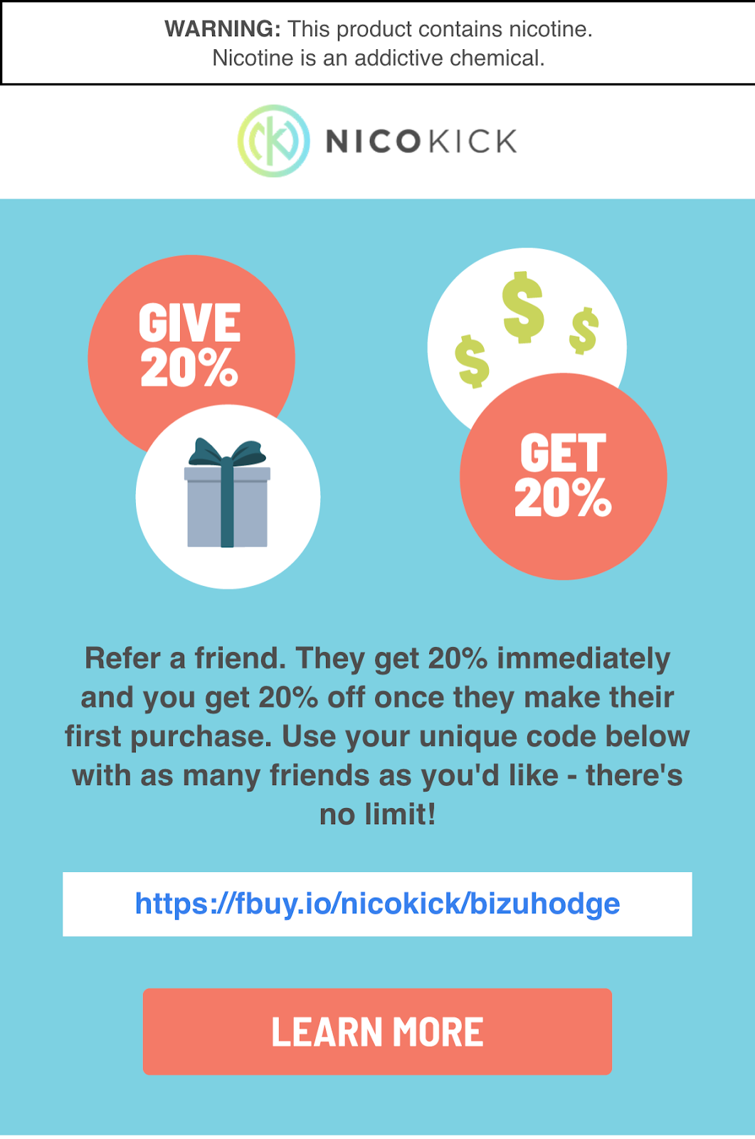 A dedicated email is a great way to let customers know that you have a referral program where they can earn rewards for sharing with Friends. In this email, you can share so much about your referral program including the offer and how to participate.