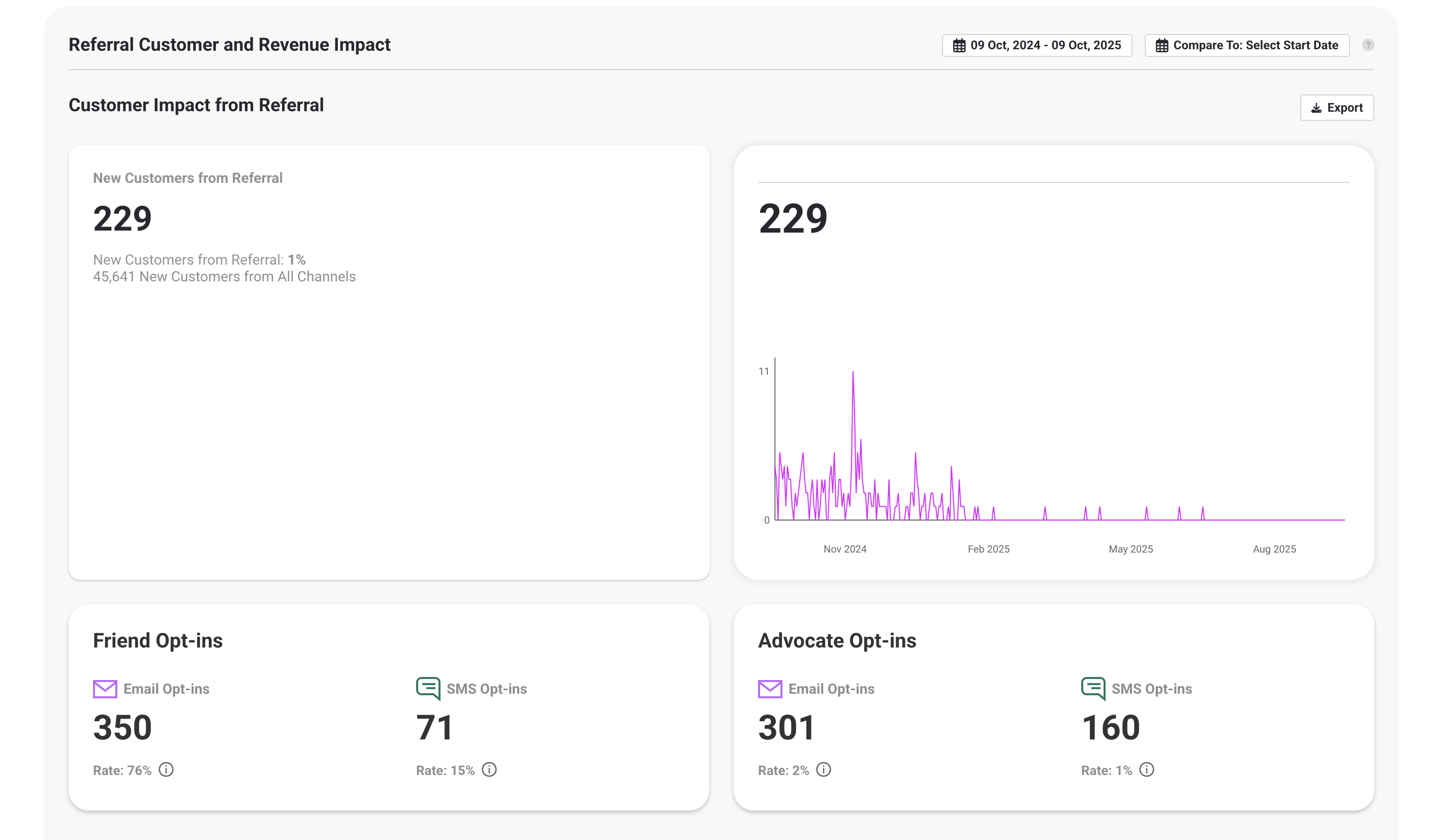 - Event Type (First Time Purchase / All) - Switch between viewing all referral activity or just first-time purchases.