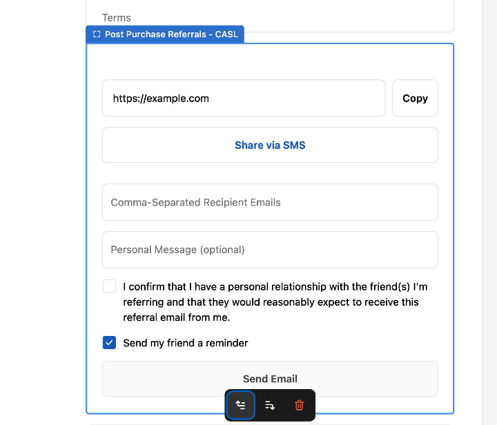 SMS Consent for Referral Sharing Post Purchase (Shopify Extensibility) - CASL Compliance