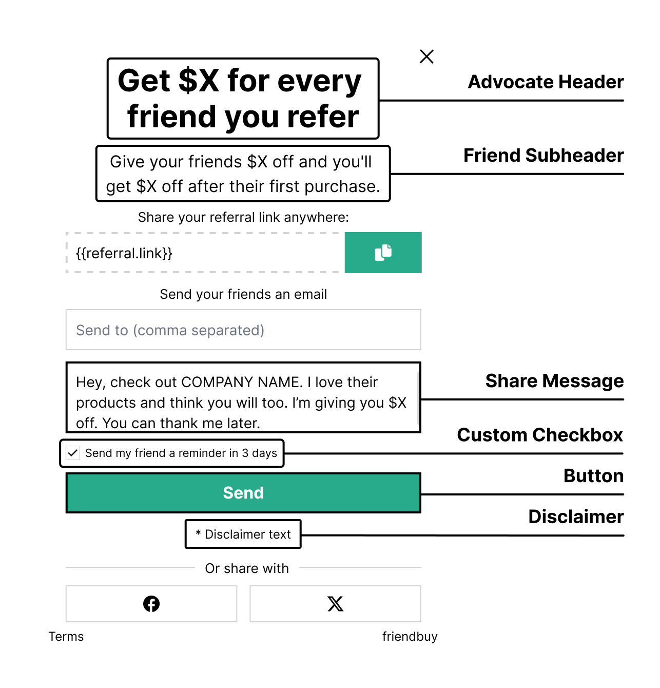 Use these character count guides when preparing copy for Friendbuy widgets. Adhering to character count guidance ensures optimal display across desktop and mobile.